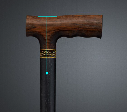 Для прямых рукоятей и «набалдашников» — от самой верхней точки.