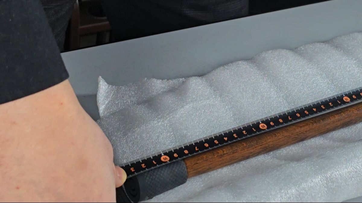Разметка. Отмерьте от точки опоры на рукояти рассчитанную длину (в нашем примере 91.5 см). Поставьте четкую метку.