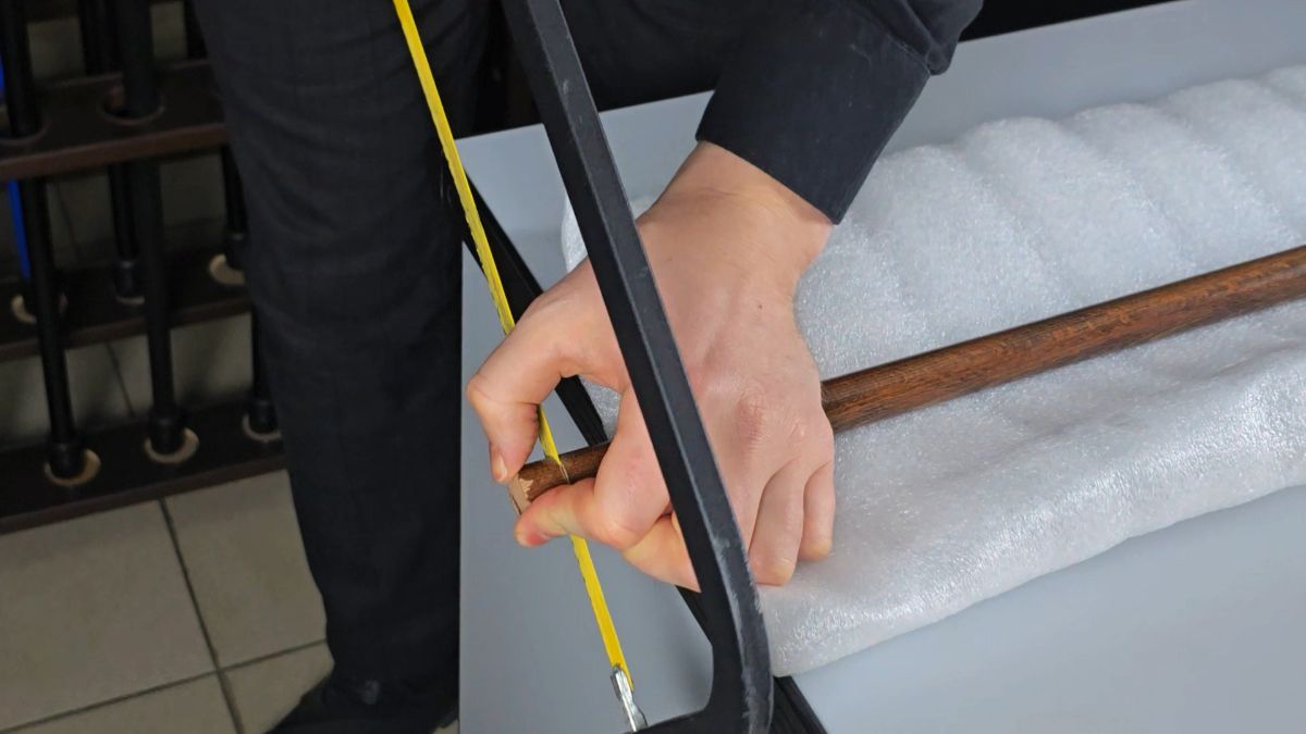 Учитывайте наконечник! Резиновый наконечник (башмачок) добавляет к общей высоте трости от 1 до 2 см. Перед работой измерьте, сколько именно добавляет ваш. Пример: Если итоговая нужная длина трости с наконечником — 93 см, а наконечник высотой 1.5 см, то пилить нужно до отметки 91.5 см от рукояти.
