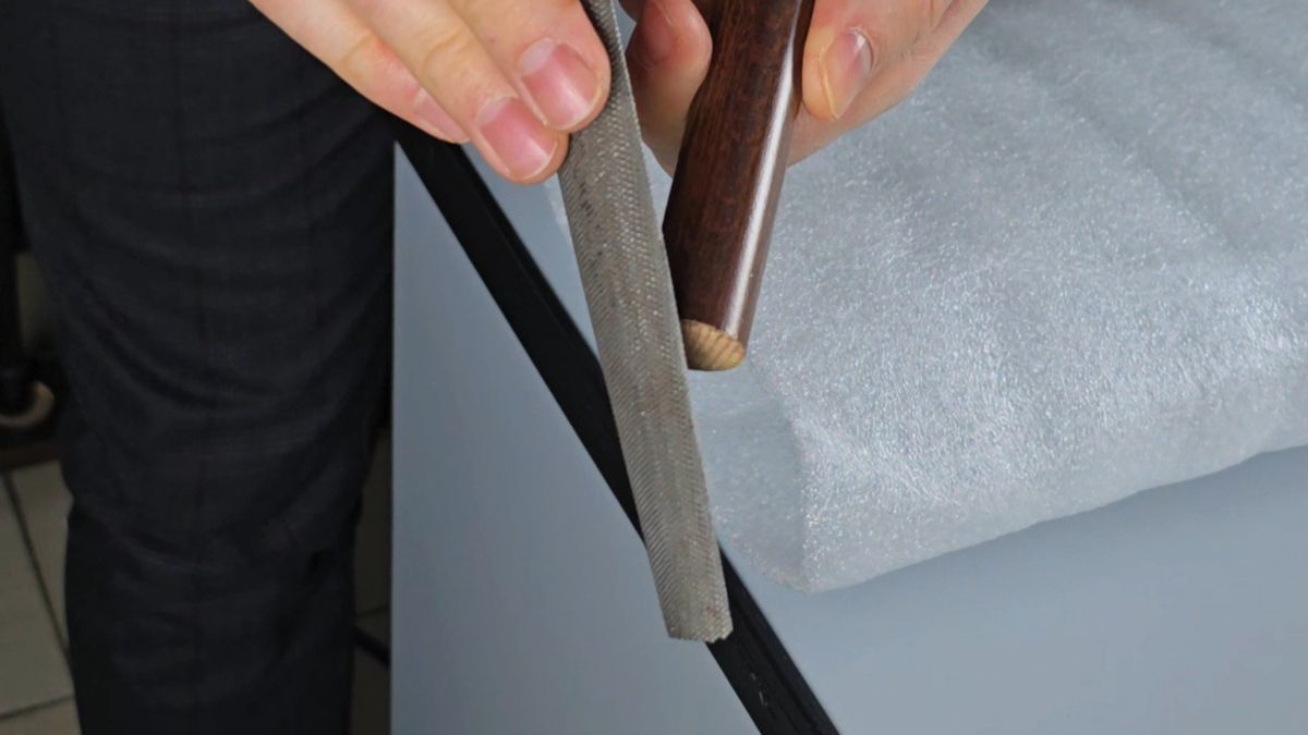 Обработка среза. После Отпиливания край будет шероховатым. Используйте напильник, чтобы убрать заусенцы и мелкие неровности. Двигайте напильник в одном направлении (от себя) под углом 45 градусов.