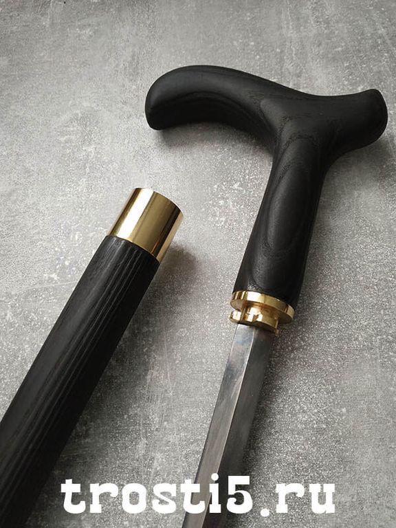 Материалом для изготовления трости является массив обожженного ясеня, который обладает не только прочностью, но и элегантным черным оттенком. Этот материал выбран не случайно – обожженый ясень позволяет избежать царапин и сколов при повреждении, в отличие от лакированных тростей. Он пропитывается мастикой, маслом или воском, что позволяет сохранить ее внешний вид на протяжении многих лет.