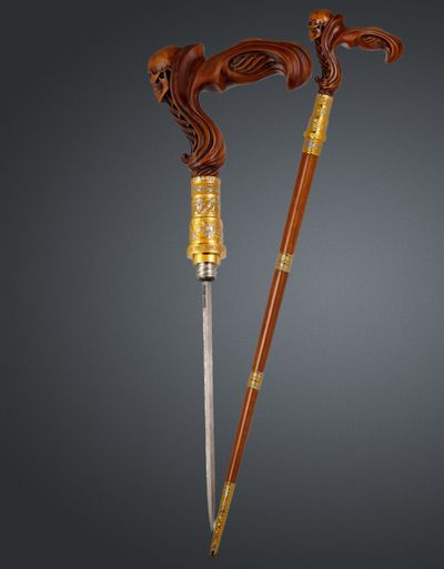 Рукоять: классическая с черепом (может быть оборудован дополнительным секретом в виде потайной капсулы)