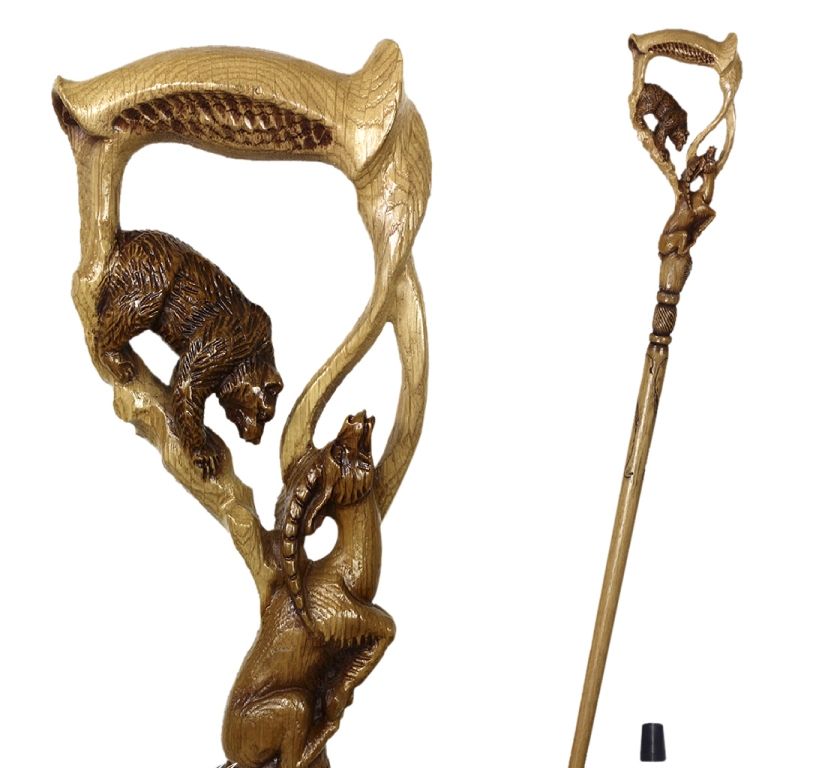 Резная подарочная трость "Охота медведя на газель"