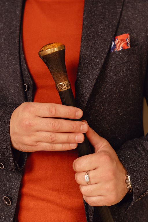 Трость ручной работы - уникальное произведение искусства. Детально проработанная трость с удобной рукоятью, элегантным шафтом и красивым декоративным кольцом.