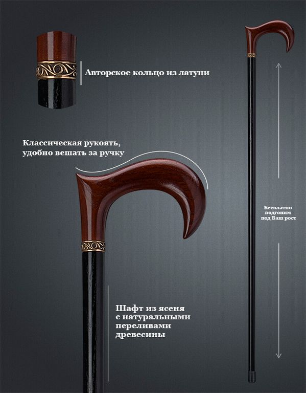 Трость ручной работы - уникальное произведение искусства. Детально проработанная трость с удобной рукоятью, элегантным шафтом и красивым декоративным кольцом.