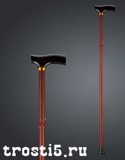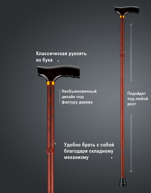 Рукоять этой трости имеет классическую форму, что делает ее универсальной и подходящей для большинства людей. Она выполнена из прочного и приятного на ощупь бука. Рукоять имеет черный цвет с легким бордовым оттенком, что придает ей элегантности и стиля.