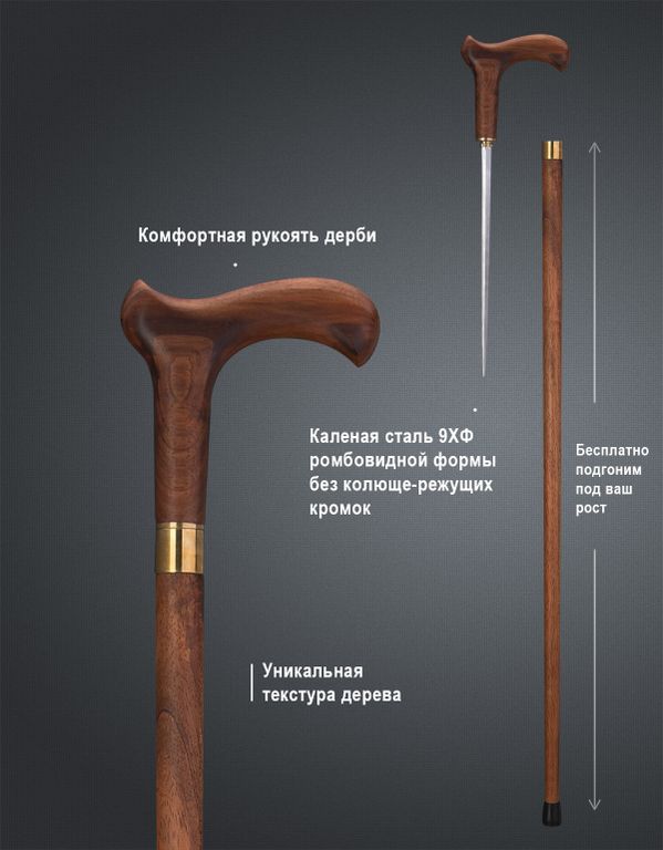 Основным преимуществом этой трости является встроенный клинок, который делает ее незаменимым инструментом не только для ходьбы, но и для защиты. Благодаря этому инновационному дизайну, трость становится универсальным аксессуаром, подходящим для различных ситуаций.