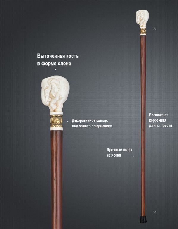 Изготовлена трость из качественных материалов, и в ее создании использованы только лучшие технологии. Пользоваться этой тростью одно удовольствие. Она легкая и прочная, так как изготовлена из специальной кости, обработанной мастером вручную. Ручка трости имеет эргономичную форму, прекрасно ложится в руку и обеспечивает комфортное использование в течение долгого времени.