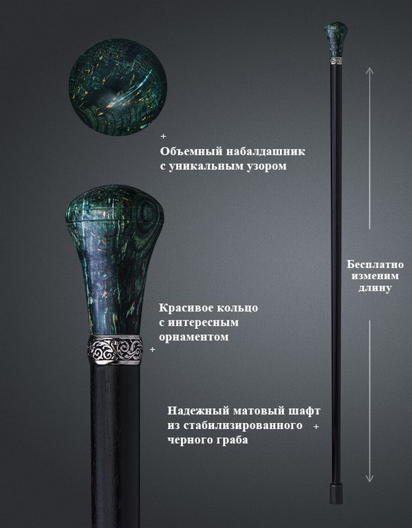 Эксклюзивная трость ручной работы. Результат многочасовых трудов мастера - уникальная трость, сочетающая в себе удобство и красоту. Сделана из уникального стабилизированного дерева.