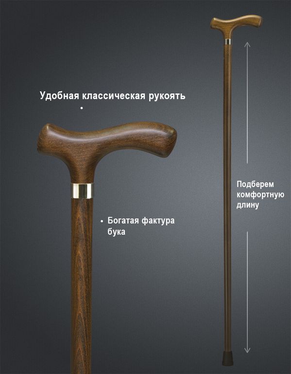 Элегантная опорная трость из Германии с утонченным шафтом и весом всего ~300гр! Удобная деревянная рукоять комфортна и приятна на ощупь при любой погоде.