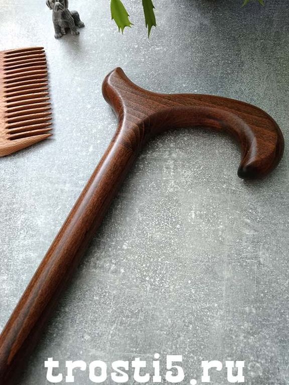 Трость имеет удобную деревянную рукоять, которая комфортна и приятна на ощупь, даже при любой погоде. Она обеспечивает надежную опору и позволяет длительное время опираться на трость без дискомфорта.