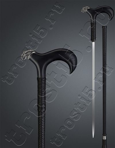 Клинок нашей трости изготовлен из высококачественной стали 95Х18 и имеет длину 49 см. Клинок поставляется с сертификатом качества, гарантирующим его надежность и долговечность. По желанию заказчика, также доступна замена клинка на клинок из дамасской стали, длиной 21 см. Стоимость такой замены составляет 9500 рублей.