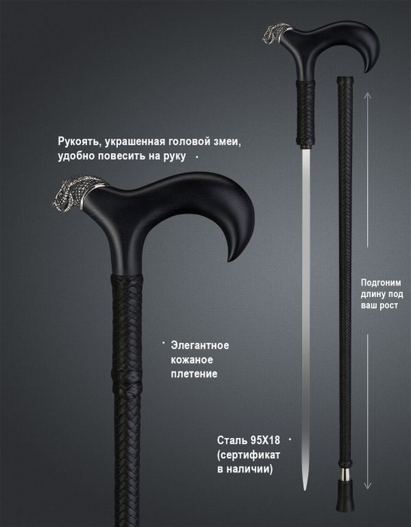 Наша трость ручной работы с клинком - это настоящее произведение искусства и незаменимый аксессуар в любой ситуации. Эта красивая и стильная трость имеет множество уникальных особенностей.