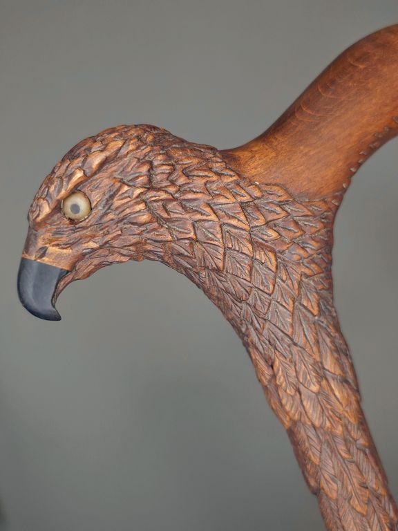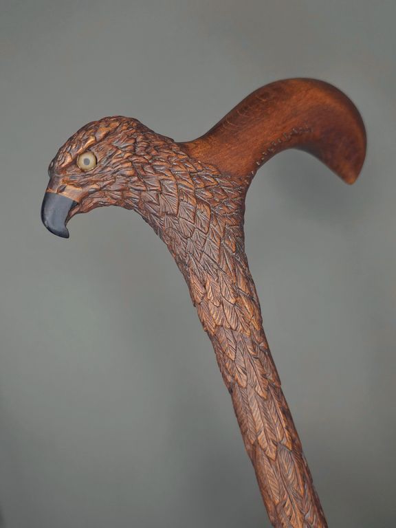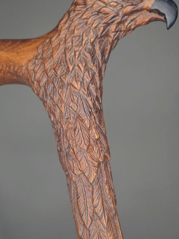 Трость ручной работы - уникальное произведение искусства. Детально проработанная трость с удобной рукоятью, элегантным шафтом и красивой структурой древесины.