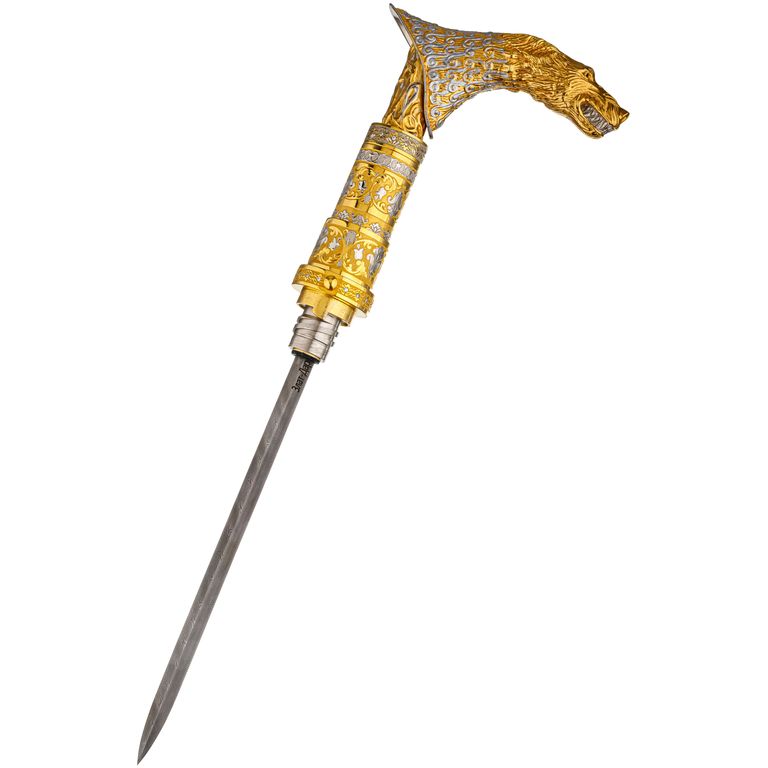 Рукоять: в виде головы волка (может быть оборудован дополнительным секретом в виде потайной капсулы)