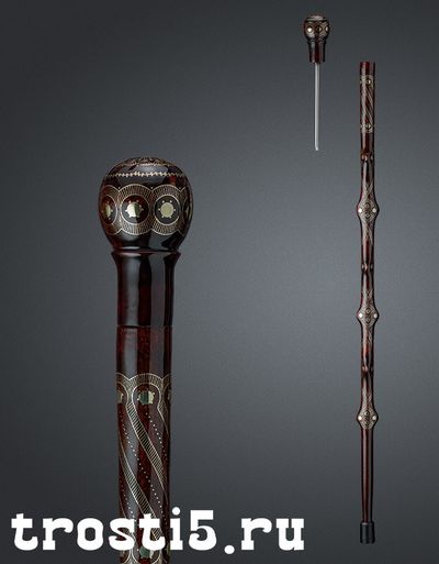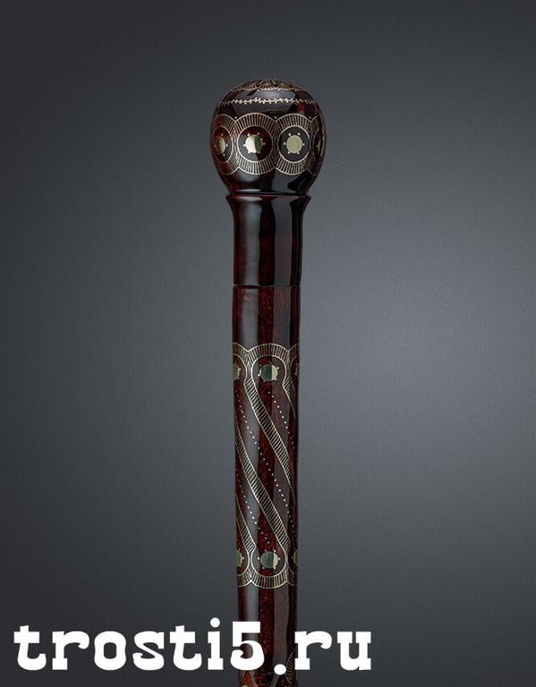 Трость ручной работы - уникальное произведение искусства. Детально проработанная трость с рукоятью в форме набалдашника, элегантным шафтом и красивой инкрустацией.