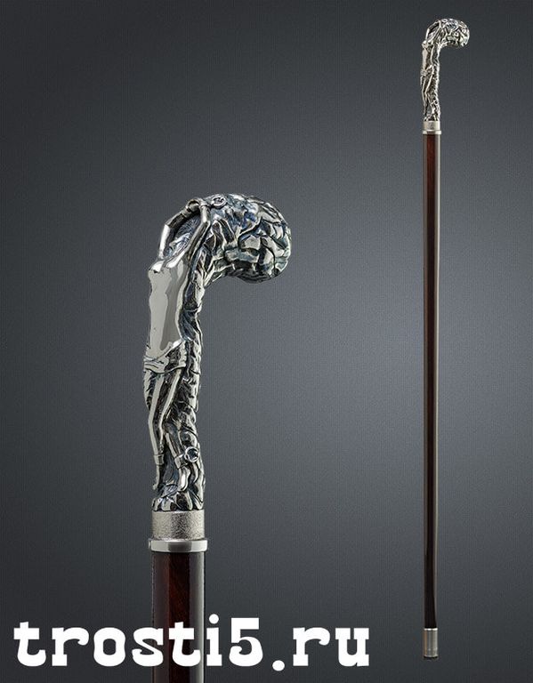 Одной из самых привлекательных особенностей этой трости является ее рукоять, выполненная в форме капли и литая из латуни с серебрением. Рукоять имеет оригинальный дизайн и придает трости особый шарм и уникальность.