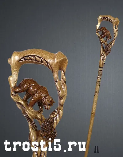 Резная подарочная трость "Гризли ловец лосося"