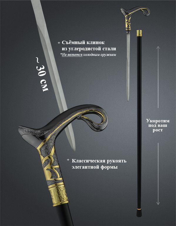 Опорная трость со съемным клинком. Рукоять удобно лежит в руке, это полноценная опорная трость.