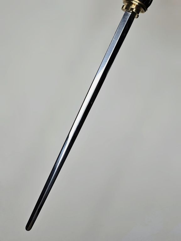 В наличии есть трость с длинным клинком 49 см с заточкой, сталь 95Х18, 49 см. (к клинку идет сертификат). Цена + 29000р к цене стандартной трости.
