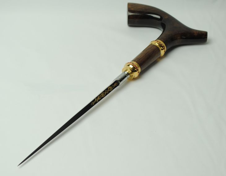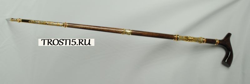 Клинок трости выполнен из высокопрочной стали марки ЭИ-107, обладающей высокой стойкостью к коррозии и износу. Трость также оснащена имиджевым наконечником с металлическим шипом, который придает дополнительную эстетику и функциональность.