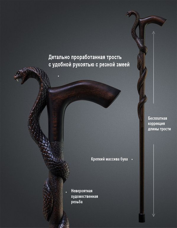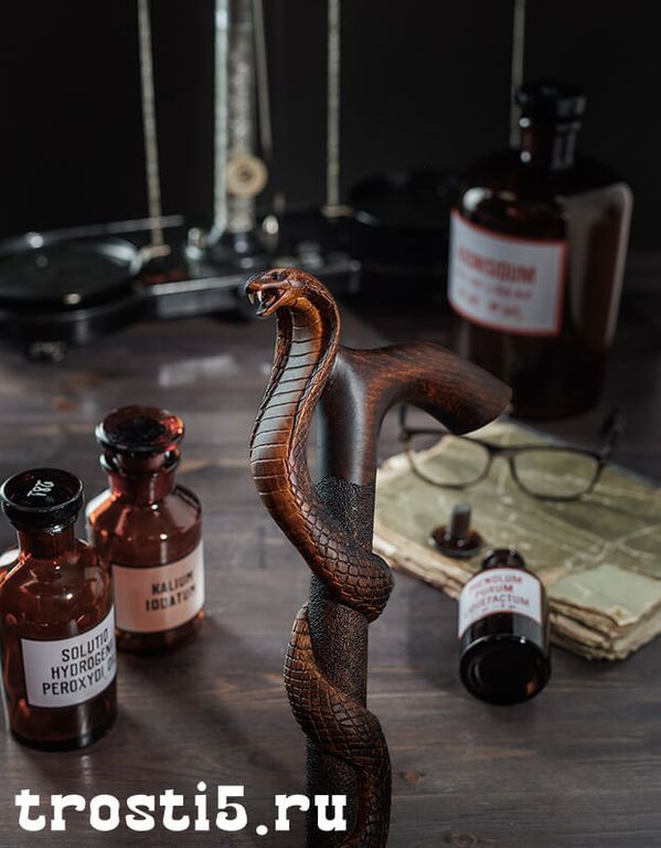 Трость ручной работы - уникальное произведение искусства. Детально проработанная трость с удобной рукоятью, элегантным шафтом и красивой структурой древесины.
