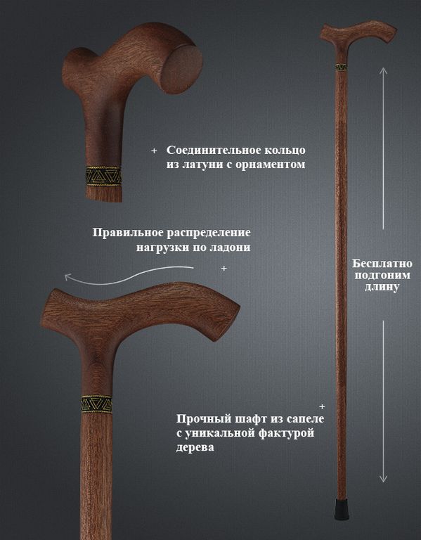 Материал трости: Сапеле*